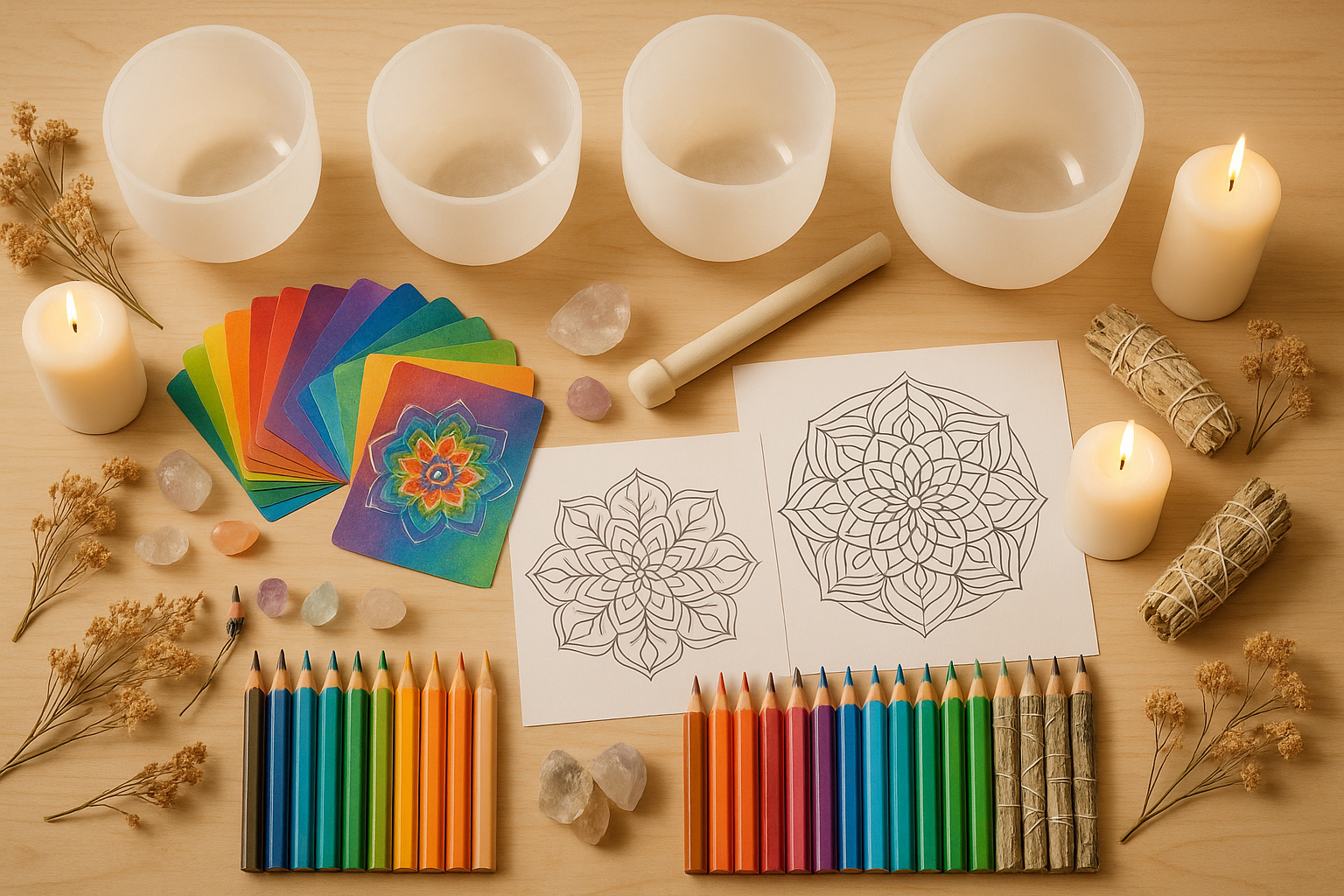 As we step gently out of summer and into autumn, this is the perfect time to slow down, reset, and reconnect with yourself. You’ll be guided into a calming state while colouring intricate mandalas — a simple, creative practice designed to quiet the mind and open the heart. Meanwhile, live sound healing with quartz bowls, drums, and other sacred instruments will carry you deeper into relaxation and flow.