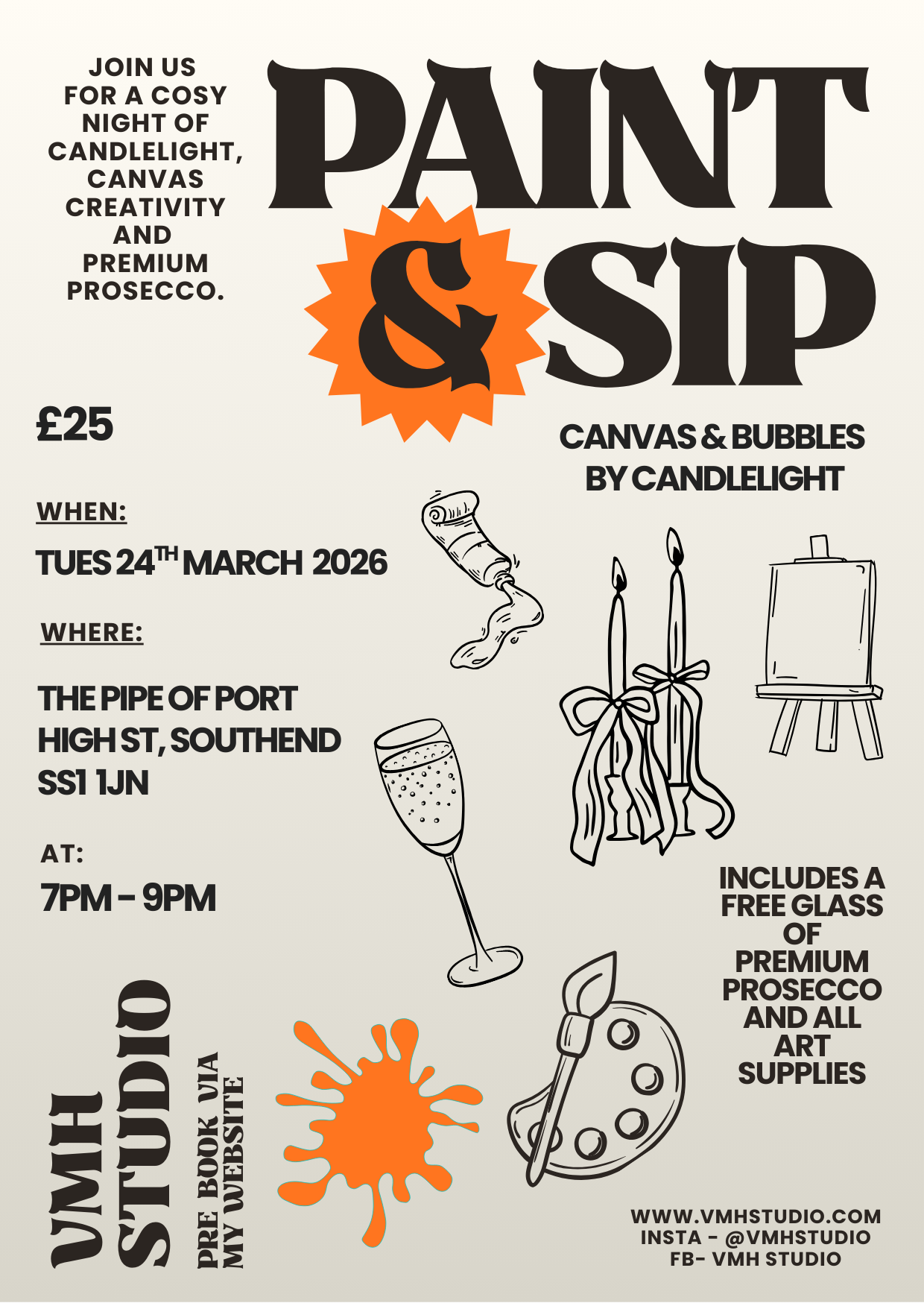Join us for a night of relaxed, no-rules creativity, premium Prosecco in hand, and plenty of laughs - all set inside the candlelit charm of The Pipe of Port.